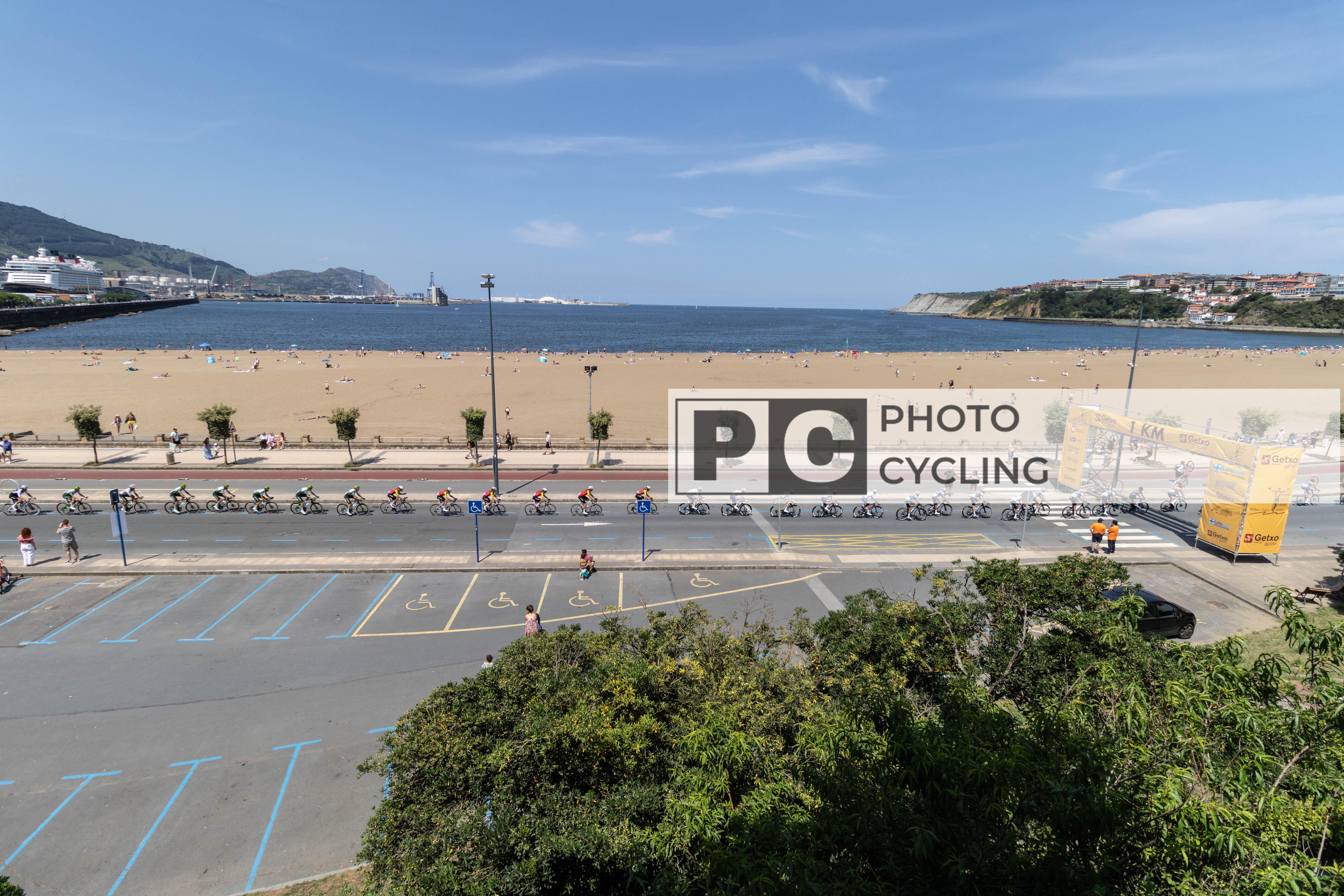 Bilbao, Spain. 03rd August 2025. The peloton passing through Ereaga beach (Getxo). Credit: Javier Fernández Santiago/ Alamy News Live
