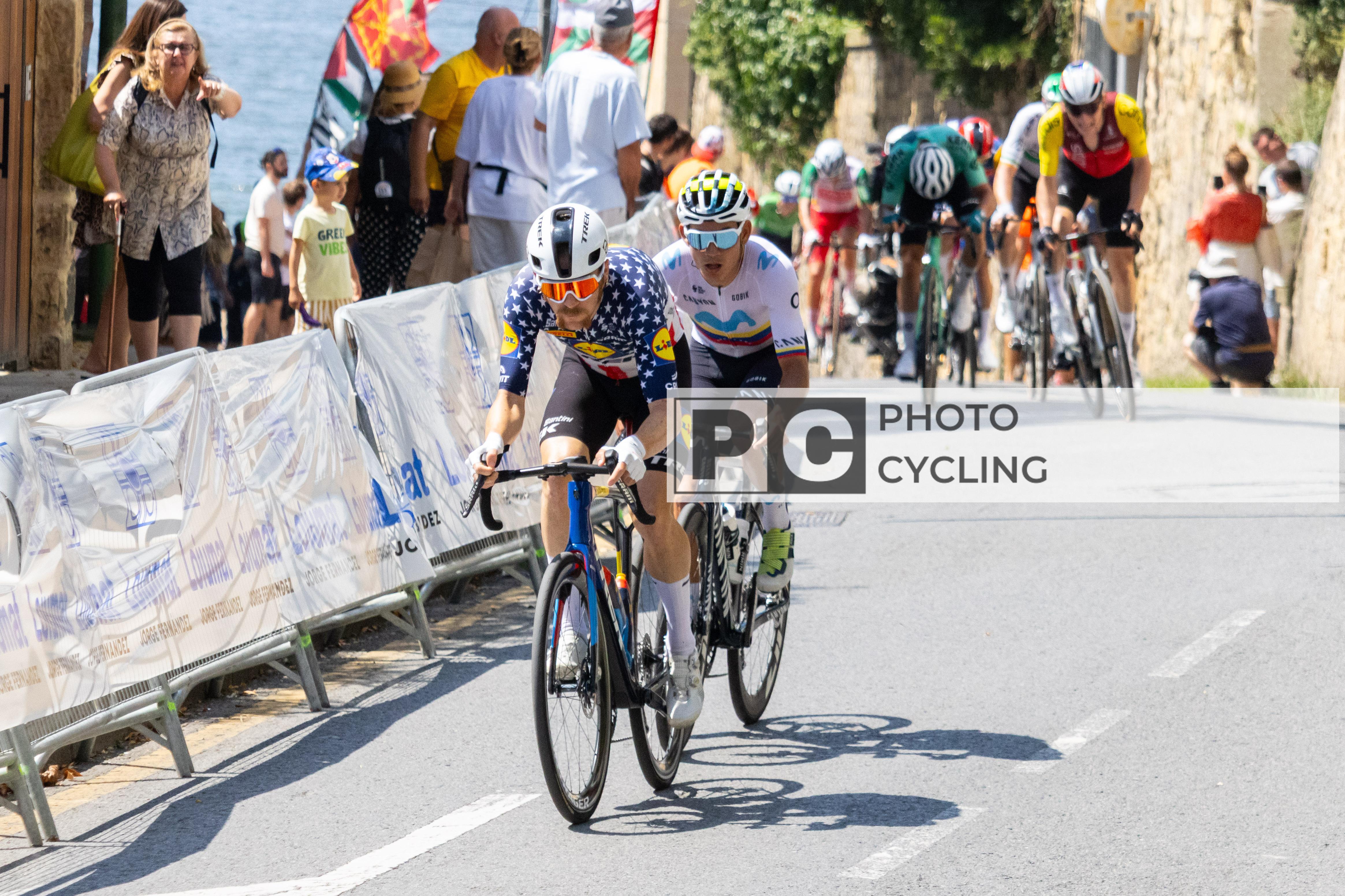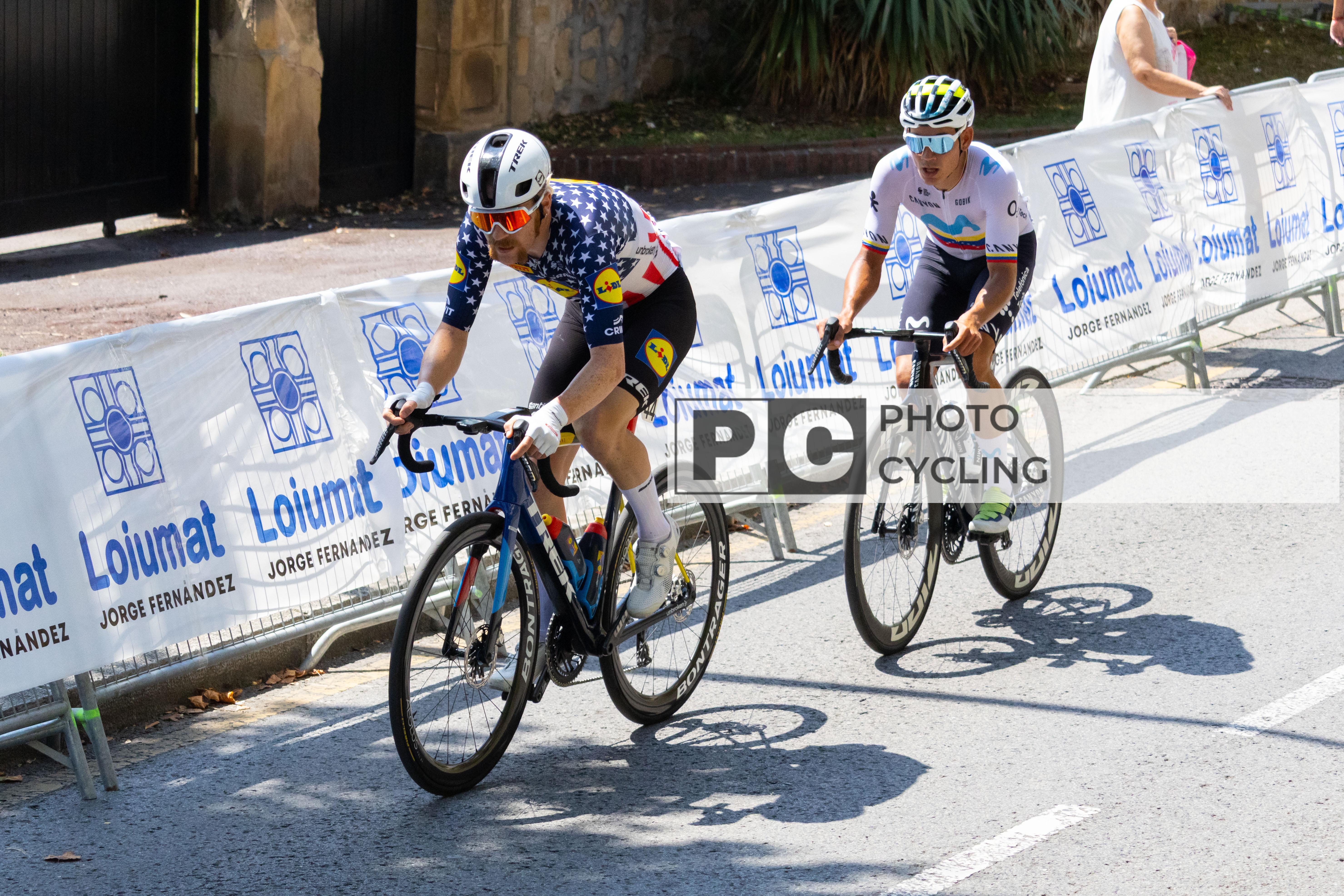 Bilbao, Spain. 03rd August 2025. Quinn Simmons (Lidl-Trek) and Orluis Aular (Movistar Team). Credit: Javier Fernández Santiago/ Alamy News Live