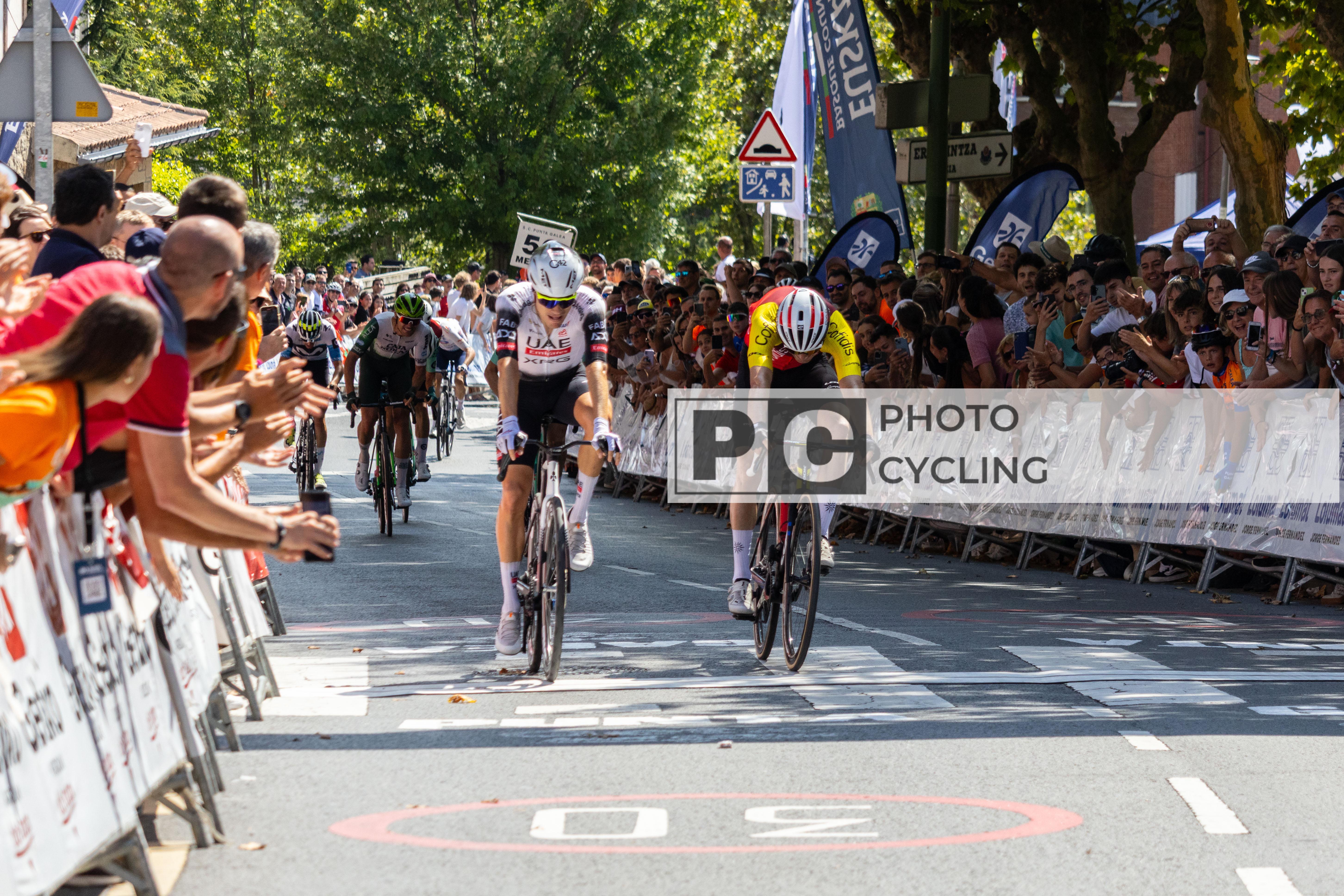 Bilbao, Spain. 03rd August 2025. Juan Ayuso (UAE Team Emirates - XRG) and Alex Aramburu (Team Cofidis). Credit: Javier Fernández Santiago/ Alamy News Live
