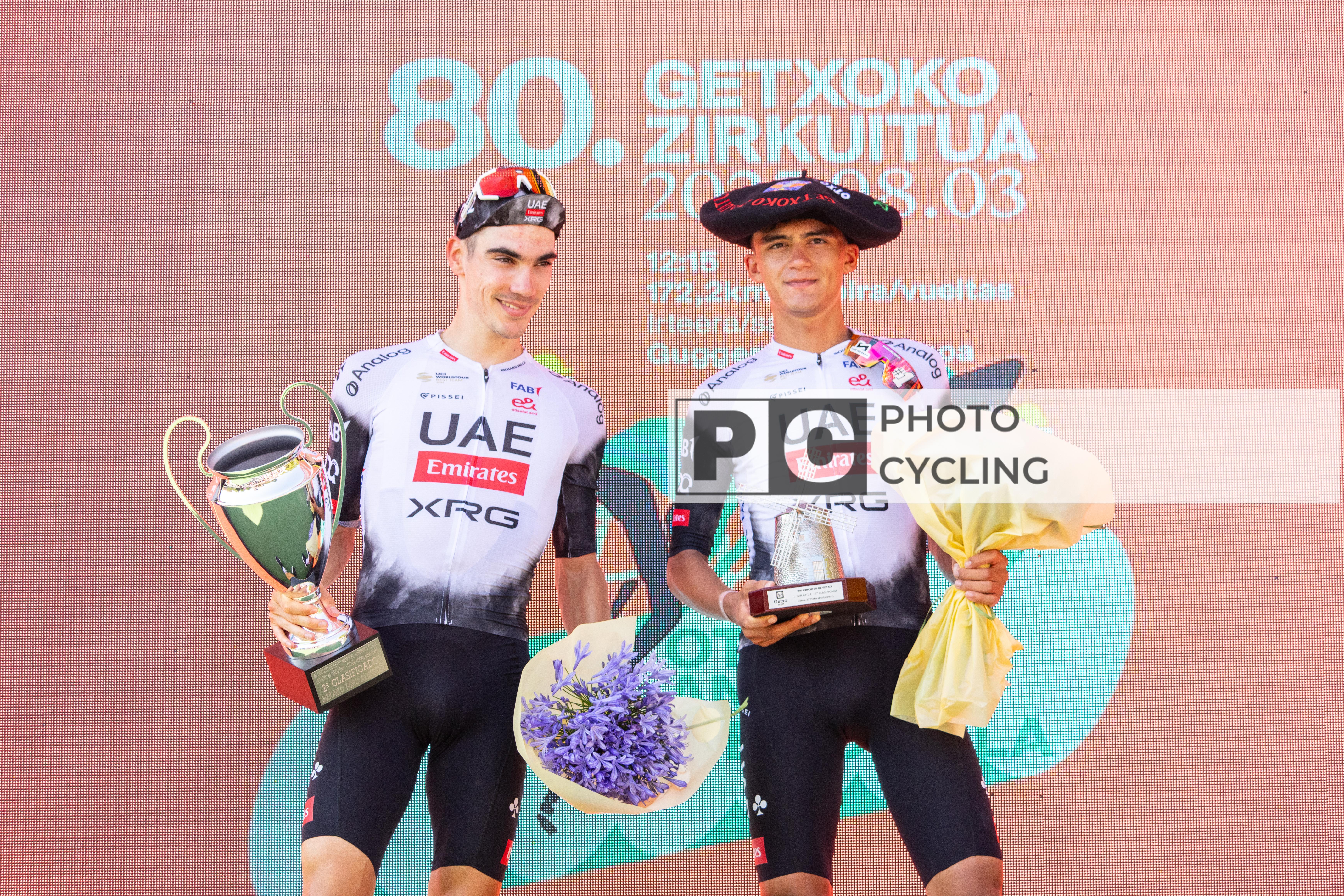 Bilbao, Spain. 03rd August 2025. Juan Ayuso and Isaac del Toro (UAE Team Emirates XRG). Credit: Javier Fernández Santiago/ Alamy News Live